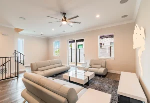 - Interior Features: Ceiling Fans, Crown Molding, High Ceilings, Living/Dining Combo