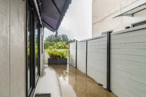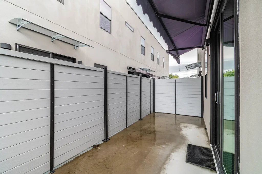 - Exterior: Awning(s), Irrigation System, Rain Gutters, Sidewalk, Sliding Doors